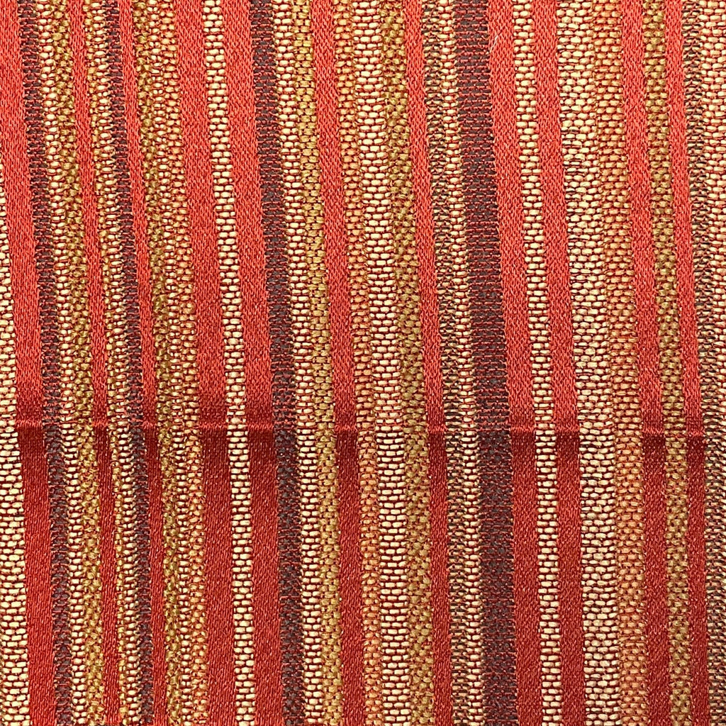 “Fiery Stripes” fabric brings a vibrant personality to any space, featuring dynamic vertical stripes in rich copper, burnished gold, and deep red tones. Its woven structure provides dimension, visual rhythm, and an elegant play between matte and metallic threads. Perfect for accent upholstery and statement pieces, this fabric adds energy and sophistication to interiors that crave a standout style.