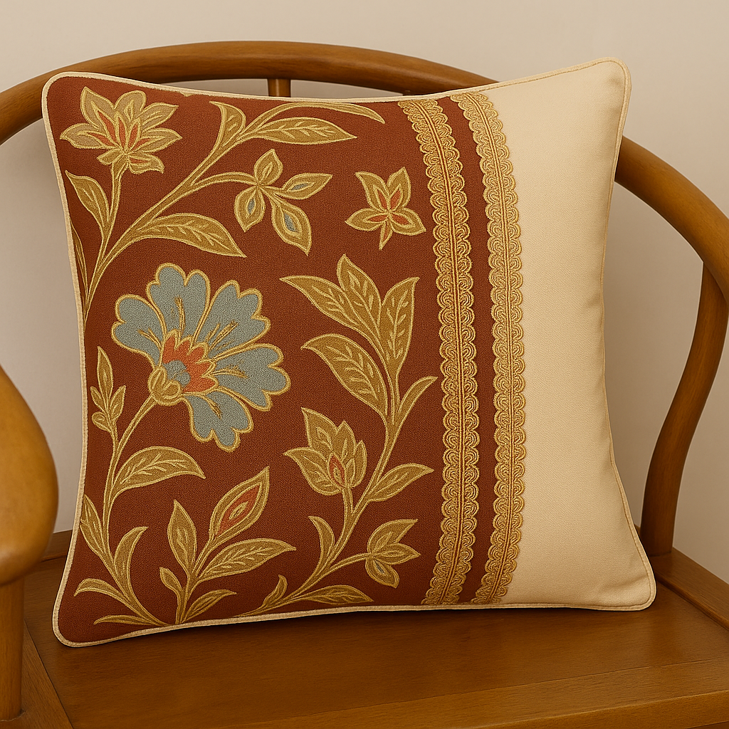 Fabrics in beige, gold, terracotta, olive green, or cream. Perfect for classic, vintage, colonial, or rustic elegant interiors.