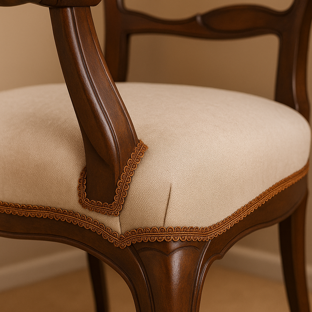 The French Gimp Trimming E03 is the perfect finishing touch that brings warmth, texture, and timeless style to any upholstery or home décor project. Its handcrafted look and elegant bronze tone make it a must-have for refined decorating.