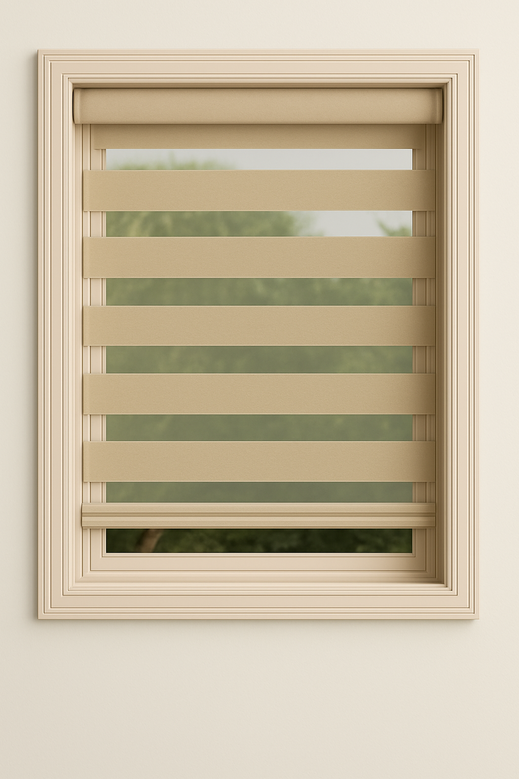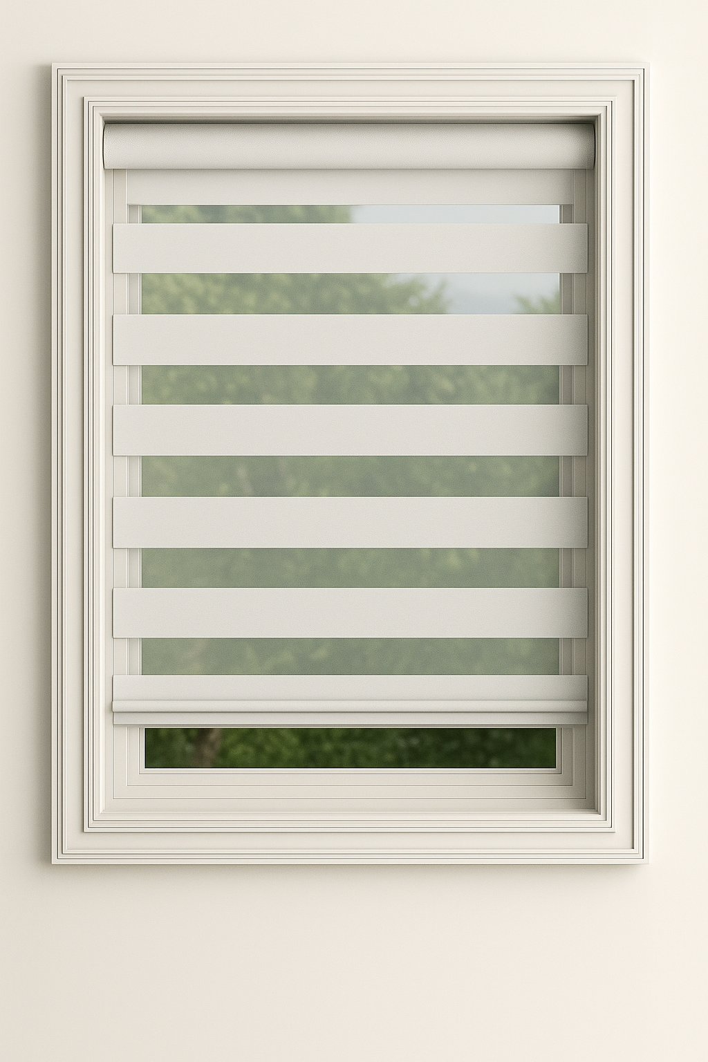 Engineered for hospitality, commercial, and residential applications, this collection provides full light blocking and fire resistance, making it ideal for hotels, offices, and modern living spaces. The alternating solid and sheer bands allow precise control over privacy and brightness, while the blackout backing ensures total darkness when closed.