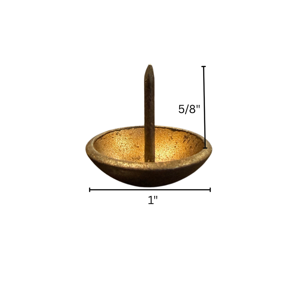 Enhance your upholstery projects with this striking Antique Gold Dome nailhead, designed to deliver both structural support and a refined decorative presence. Featuring a generously sized 1" round dome head and a warm antique gold finish, this nailhead offers a subtle metallic glow with a softly aged character. The lightly textured surface reflects light beautifully, creating depth and dimension that elevates traditional, rustic, and even transitional furniture designs.