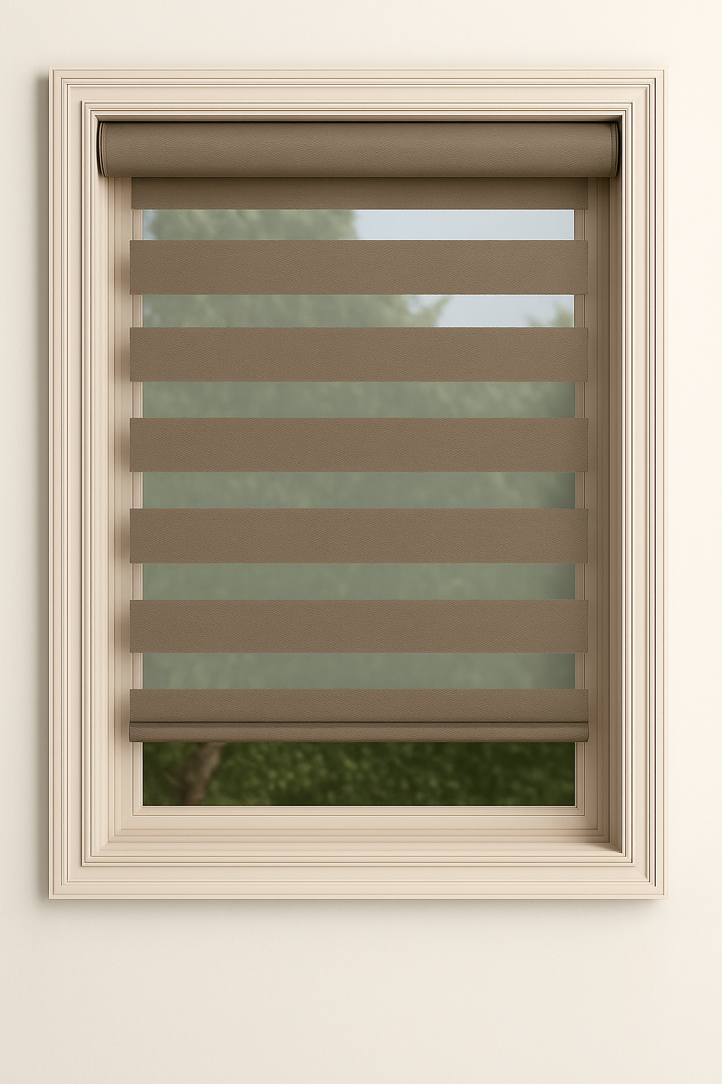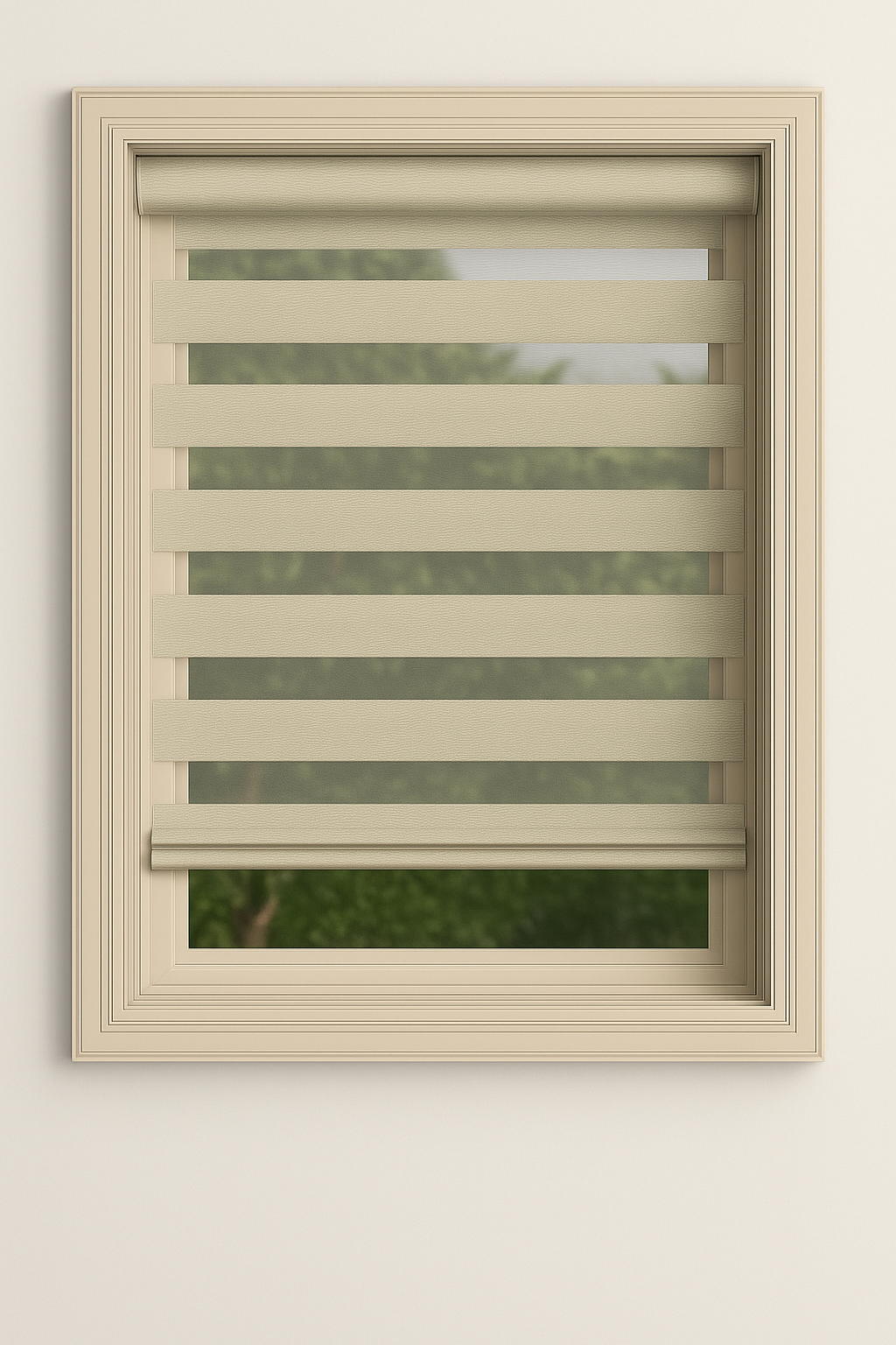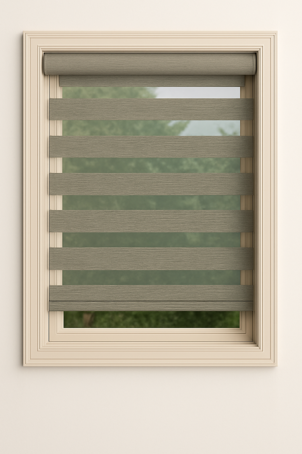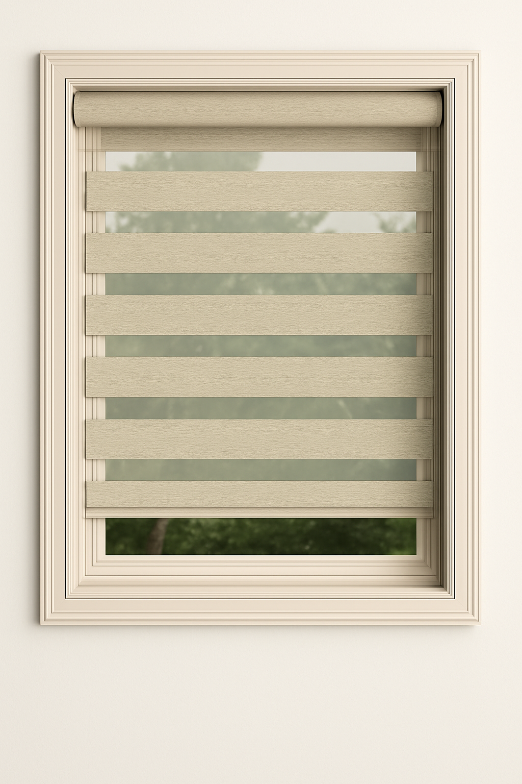 The Cezanne (Perfect) B/O 2 Zebra Shades collection represents the perfect harmony between luxury and performance. Its densely woven blackout fabric offers full light blocking, while the delicate horizontal texture brings warmth and depth to any interior. The subtle pattern evokes the look of natural fibers, providing a sophisticated, soft appearance that complements both classic and modern spaces.