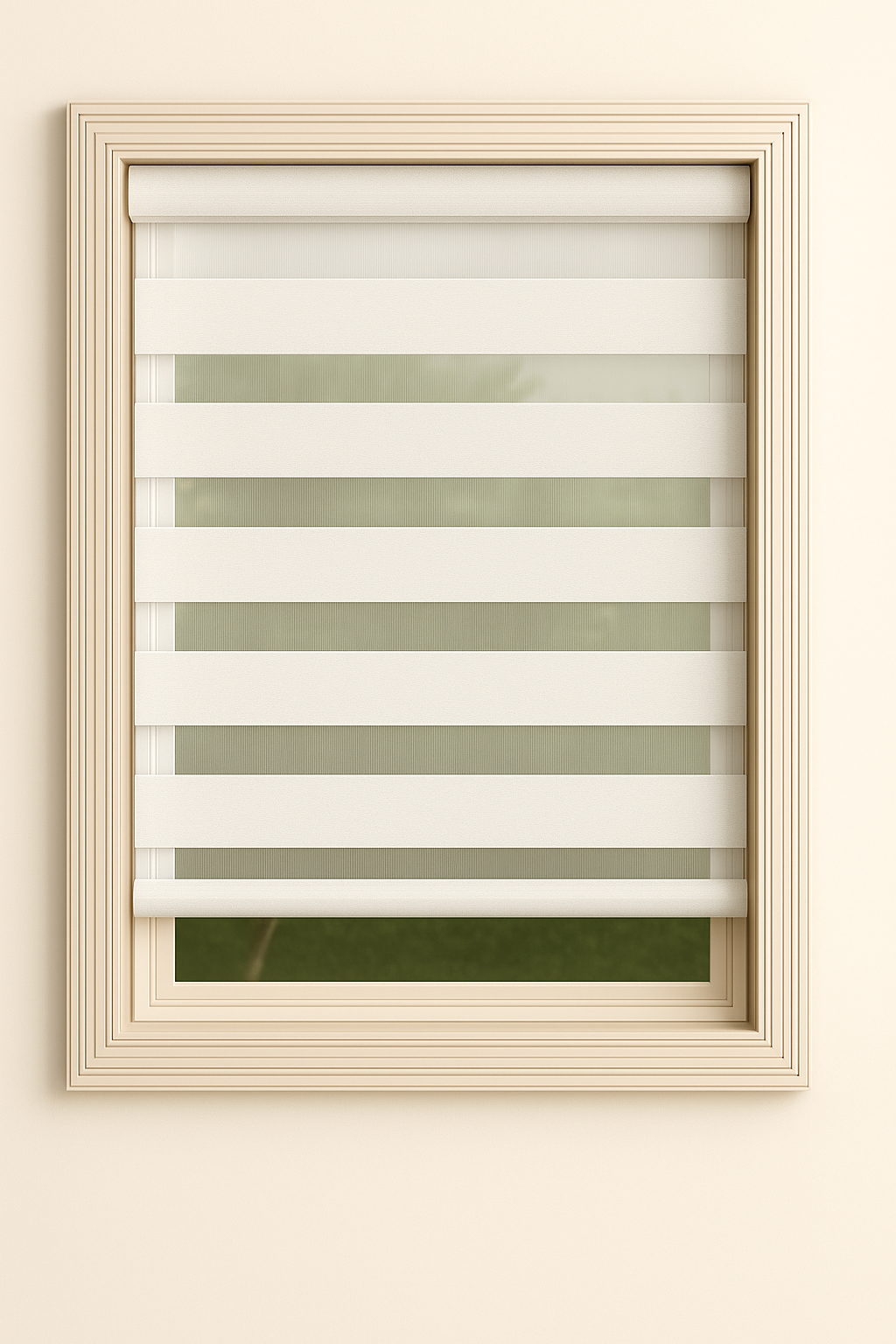 The Naomi B/O 2 Zebra Shades collection elevates interior spaces with a sophisticated texture and advanced light control performance. Its finely woven pattern offers a soft interplay of light and shadow, creating elegant contrast and visual harmony across any room. Each fabric band transitions seamlessly between sheer and solid, allowing effortless control over brightness and privacy throughout the day.