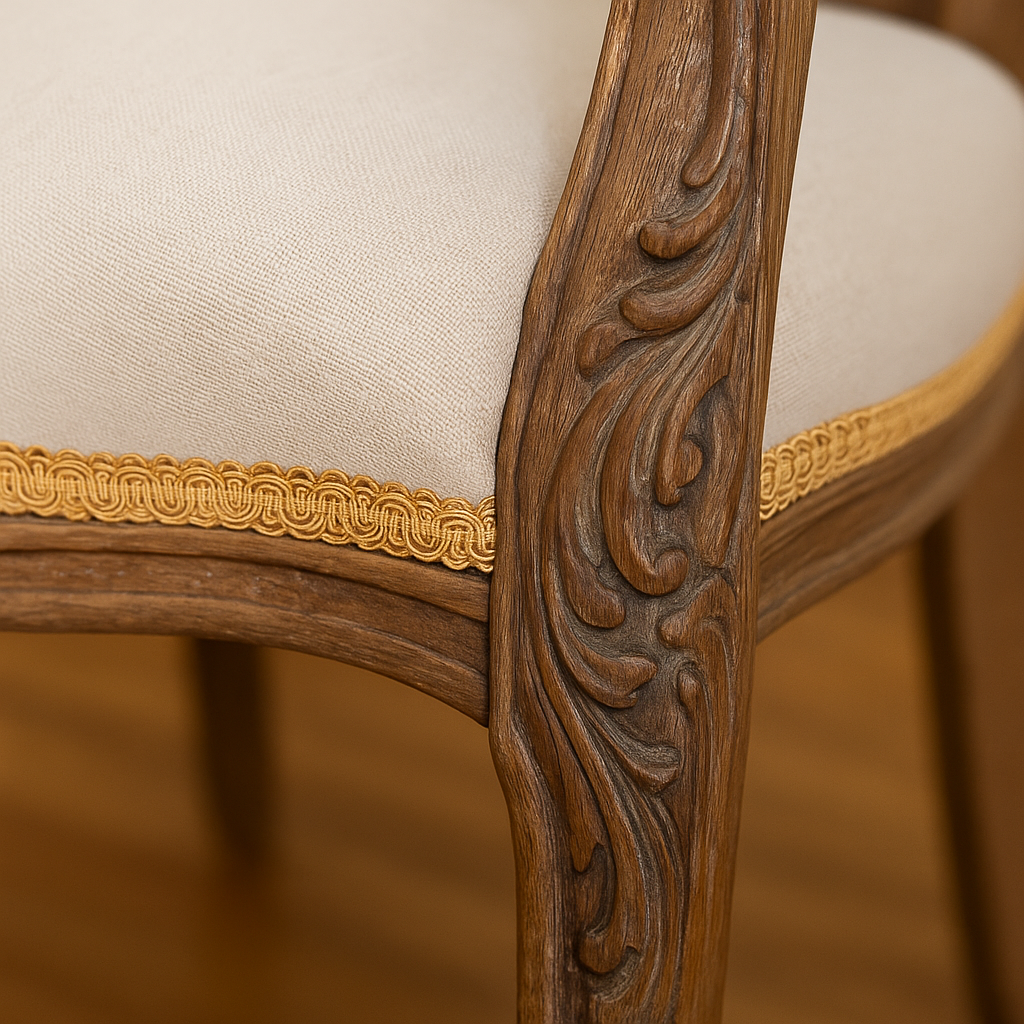 Fabrics in ivory, cream, red, emerald green, navy blue, or beige tones. Perfect for classic, baroque, colonial, or glamorous interiors.
