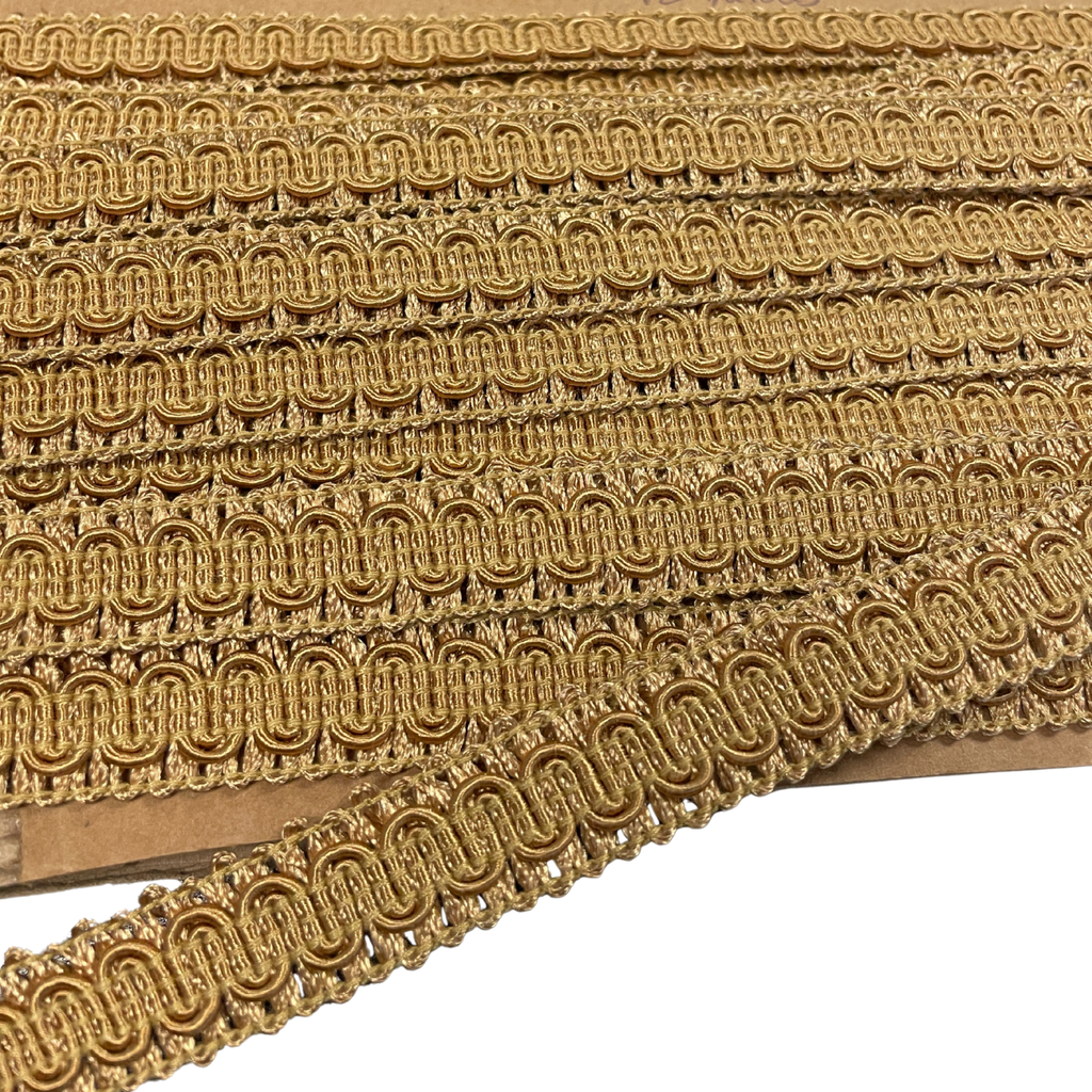 The classic gold (230) tone delivers warmth and sophistication, bringing a luxurious touch to classic, vintage, or elegant modern interiors. Its metallic shimmer and intricate braiding make it an ideal accent for upscale upholstery and décor projects.