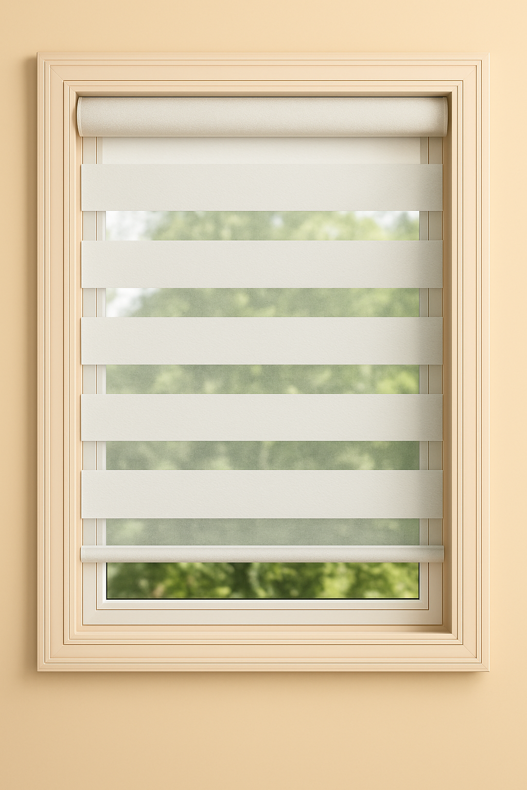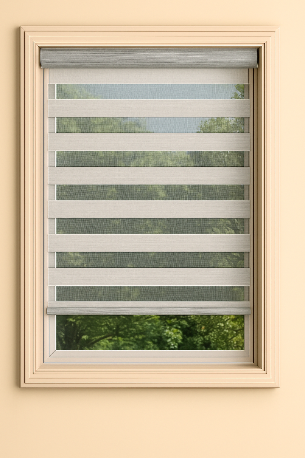The Phoenix B/O Zebra Shades collection embodies sophistication and practicality, offering blackout functionality with a refined woven texture. Its balanced design features delicately layered solid and sheer bands that blend seamlessly, creating a soft visual rhythm while maintaining complete light control when needed.