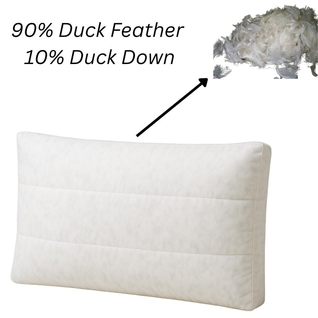 Filled with 90% duck feather / 10% duck down for natural comfort and balanced support.