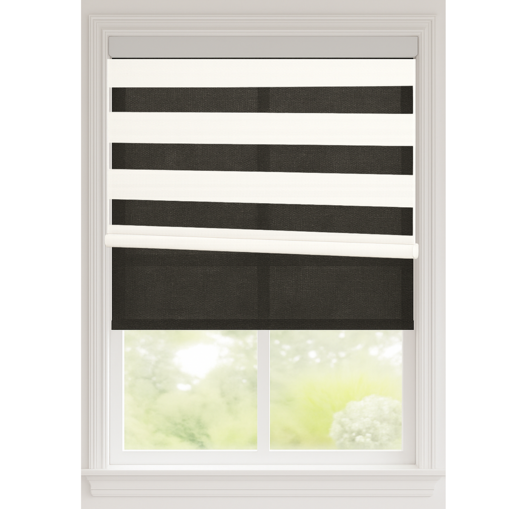 Dual-function system: Roller Shade Light Filtering + Zebra Shade Light Filtering