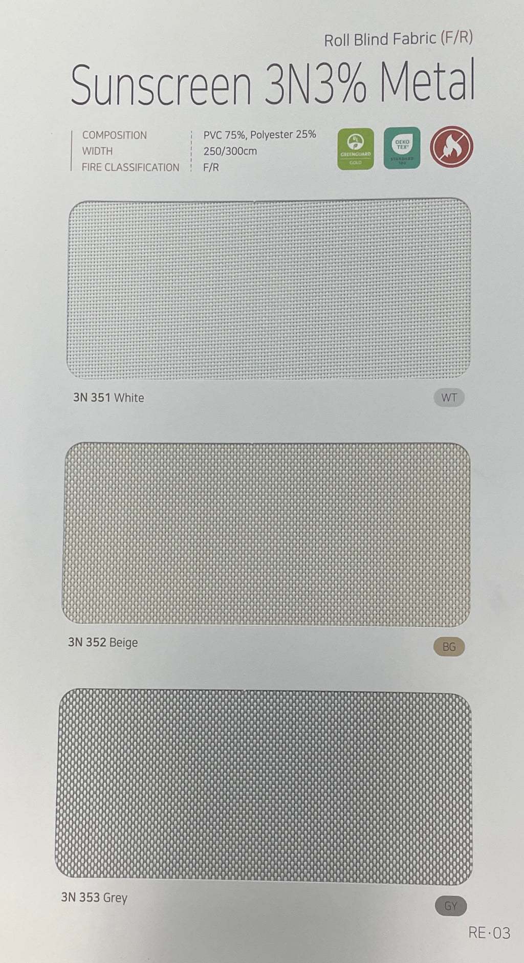 š„ Sunscreen 3N3% Metal (F/R) ā Solar Roller Shade with Fire Retardant Protection