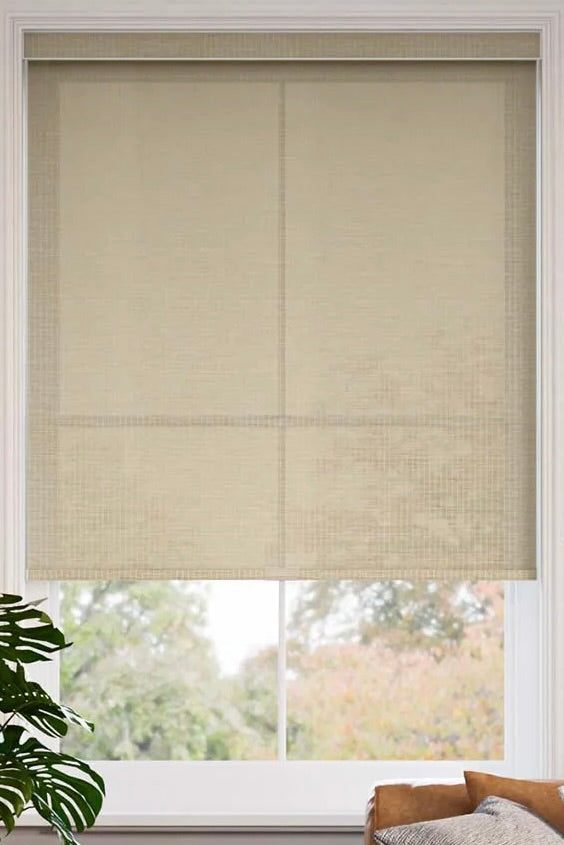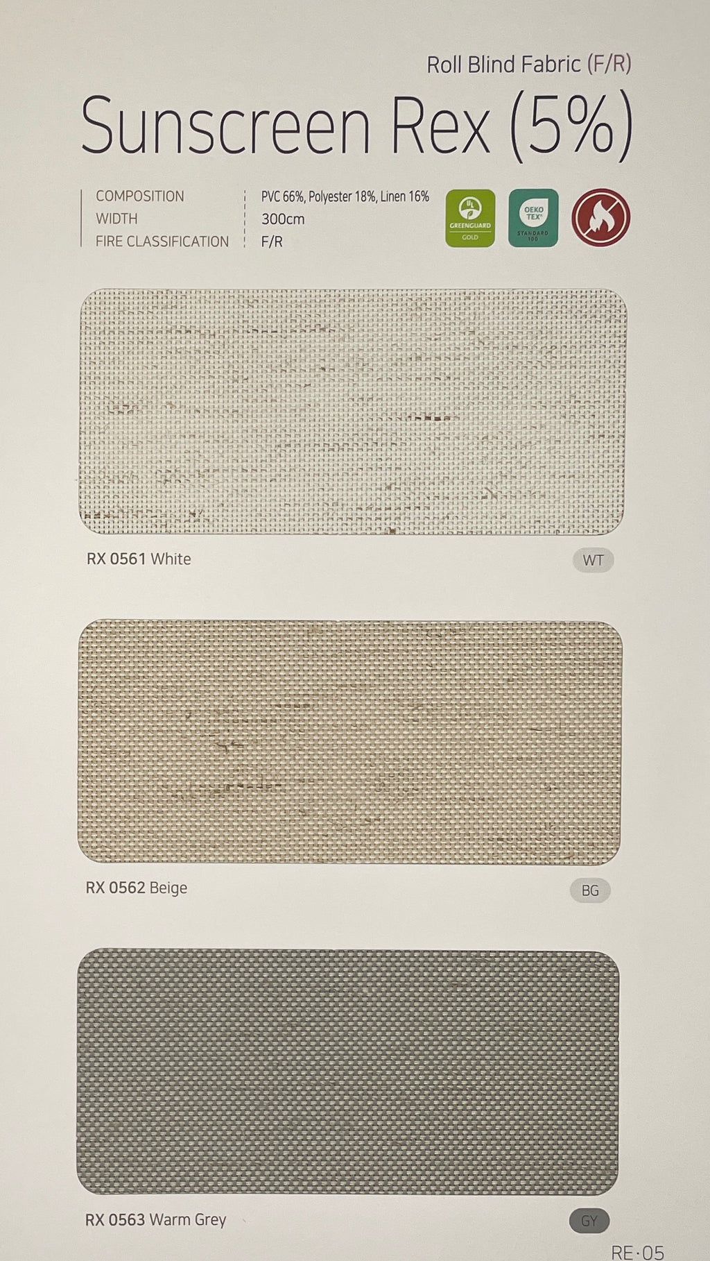🔥 Sunscreen Rex (5%) (F/R) – Textured Solar Roller Shade with Natural Linen Aesthetic & Fire Retardant Protection