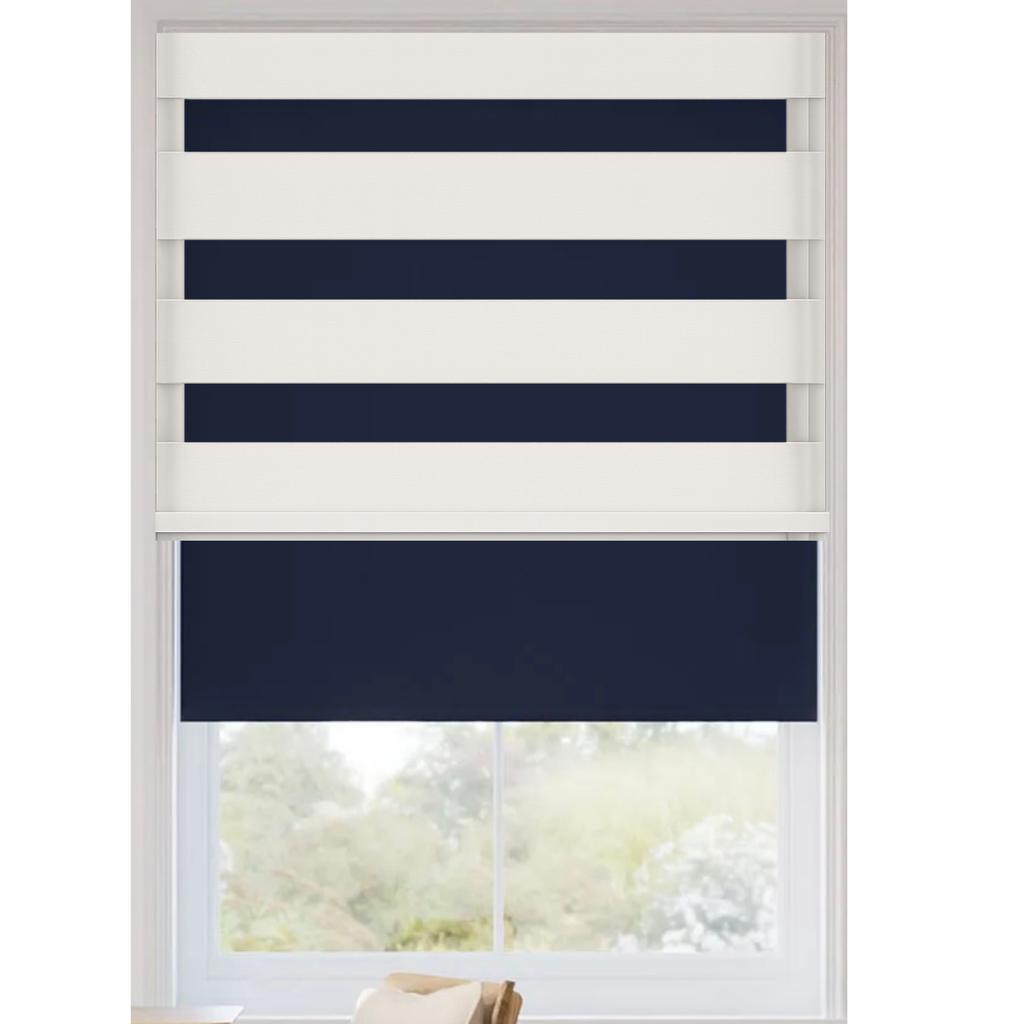Light Control: Dual Blackout â Roller Blackout + Decorative Zebra Blackout